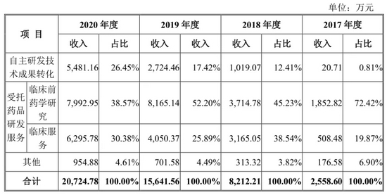 根据招股说明书,百诚医药是一家以药学研究为核心的综合性医药技术研发企业,采取“受托研发服务+研发技术成果转化”双线发展战略,主要为各类制药企业、医药研发投资企业提供药物研发服务及研发技术成果转化。目前提供的服务主要包括医药技术受托研发和自主研发技术成果转化。