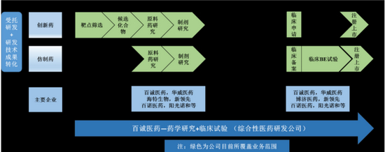 (1)受托研发服务:为各大制药企业、医药研发投资企业等提供药学研究、临床试验及注册申报等一体化医药研发服务,其中临床试验研究服务集中于生物等效性(BE)试验;