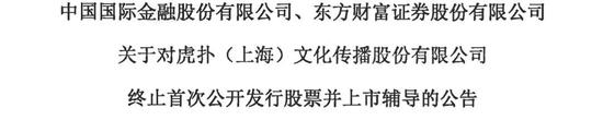 6月23日上午,中金公司和东方财富证券联合宣布,鉴于虎扑拟调整上市计划,中金公司、东方财富证券、虎扑三方同意解除辅导协议,终止对虎扑首次公开发行股票并上市的辅导工作。此时距离虎扑正式启动上市计划,已经过去6年时间。