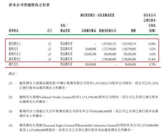 谢承润的姐姐谢其润,出生于1992年,穿透后持股12.08%。她除了是中国生物制药董事会主席,也是正大天晴董事及北京泰德副董事长。2015年,谢其润毕业后进入家族企业,年仅23岁担任董事会主席和执行董事。谢其润还于2018年、2019年连续两年获《福布斯》中文网评为“中国最杰出商界女性”。