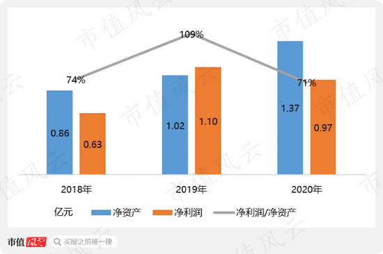 但再看下面一张图:过去三年,醉清风净资产规模与净利润相当!