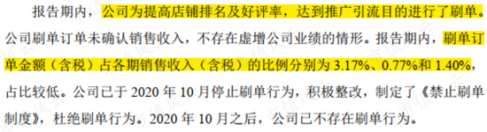 根据醉清风在招股书自爆,一度为了提高店铺排名及好评率而刷单,直到2020年10月之后才不再刷单。