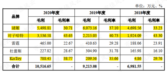 从毛利率来看,对子哈特和KisToy毛利率都高于醉清风自有品牌谜姬,即在与国际大品牌参与竞争时,醉清风更多采取的是低价竞争的策略。