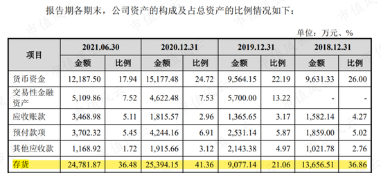 2020年,公司存货达2.54亿,占总资产的41.36%。2021年上半年,公司仍有存货2.48亿。