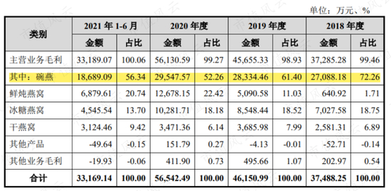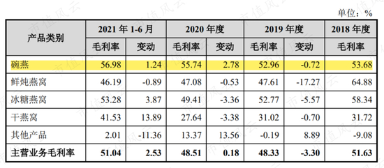 其中,碗装常温即食燕窝(简称“碗燕”)始终是公司的核心产品,对公司的毛利贡献常年在60%上下。