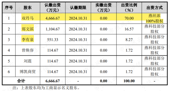 2014年10月,厦门市双丹马实业发展有限公司(简称“双丹马”)等创始人以股权出资的方式,设立了公司前身,即——厦门燕之屋生物工程发展有限公司。