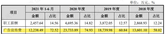 其中,广告宣传费是大头,占销售费用的七成左右。