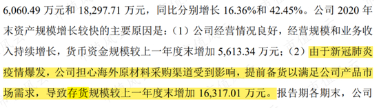 公司对此解释为:受疫情影响,公司进行提前备货,以及公司经营规模扩大,产量增加,存货规模也随之增加。