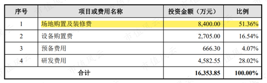 其中,一半资金将用于“场地购置及装修”。