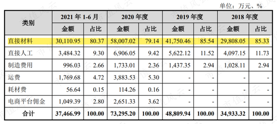 公司的主营业务成本中,直接材料占比在80%左右。而直接材料中,主要原材料食用燕窝占比在85%以上,其余为冰糖、人参、阿胶等辅料以及玻璃瓶、PP碗、铝碗、瓶盖等。