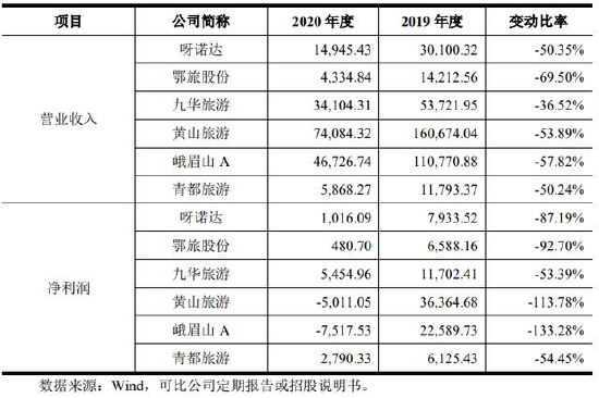 同时,青都旅游列举了呀诺达、鄂旅股份、九华旅游(603199.SH)、黄山旅游(600054.SH)和峨眉山A(000888.SZ)作为同行业可比公司。可以发现,同行业公司的业绩均有一定程度下滑。