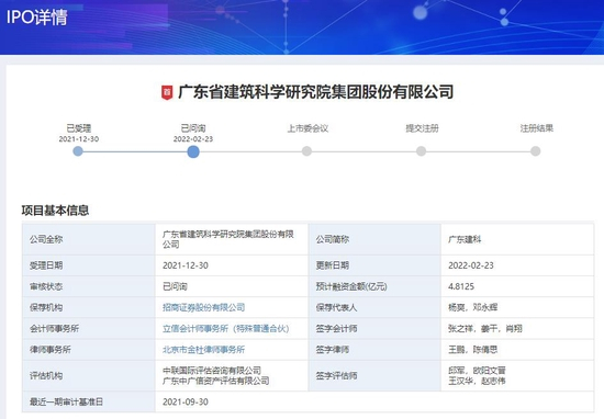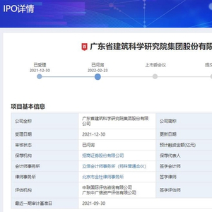 2月17日,因发行人律师北京市金杜律师事务所(下称“金杜律师”)已出具复核报告,深交所恢复广东省建筑科学研究院集团股份有限公司(下称“广东建科”)发行上市审核。