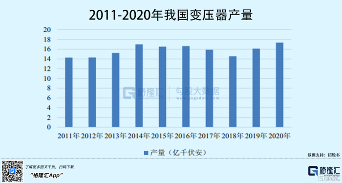 根据中国变压器网《2020 年电力装备行业运行分析》显示,2020年我国变压器产量为 17.36 亿千伏安。2020年,公司变压器(含箱式变电站用变压器)的销量为916.99万千伏安,推算当年公司全国市场占有率约为 0.53%,占比较低。