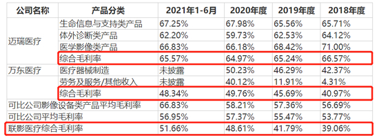 另外,迈瑞医疗近些年来的综合毛利率长期保持在65%左右,联影医疗也不及迈瑞医疗。