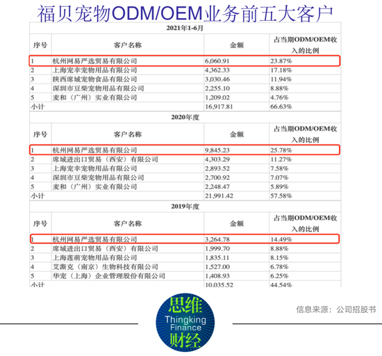 从2017年开始,杭州网易严选贸易有限公司(以下简称“网易严选”)与福贝宠物开始合作,到2021年上半年这家互联网销售平台已经成为了福贝宠物最大的ODM采购商。