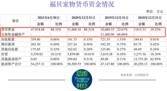 值得注意的是,据招股书,2019年底福贝宠物持有交易性金融资产超3亿元(占货币资金66%),仅仅是购买了银行理财产品。