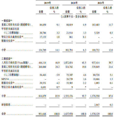 其中,乙型肝炎疫苗及人用狂犬病疫苗为艾美在市场上处于领先地位的主要商业化疫苗产品。2019年、2020年、2021年,乙型肝炎及人用狂犬病疫苗产品占艾美总收入的84.2%、90.2%及93.0%。