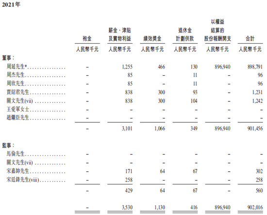 而根据招股书描述:“作为对雇员的一种激励方式”,在这9.521亿的开支中,8.969亿人民币的一次性股份报酬开支全部属于周延一个人,其余的5520万股份报酬开支也不涉及任何一名高管。