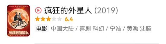 但到了《疯狂的外星人》,虽然宁浩写了好几年剧本,改编原型还是刘慈欣的科幻短篇小说《乡村老师》,整个电影却完全是在迎合观众对“疯狂系列”的期待,给贺岁档喂“工业糖霜”,评分只有6.4,观众一点不买账。