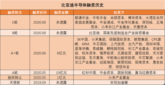 在对小米产业基金完成股权转让的当月,比亚迪半导体便拿到了红杉中、中金资本、国投创新等知名机构19亿元的A轮融资。