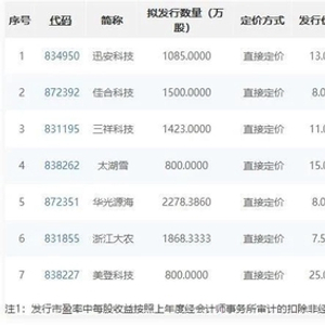纬达光电今日在北交所上市,北交所股票数量增至156只。根据北交所安排,还有6只新股已经敲定上市时间,美登科技将于12月28日登陆北交所,浙江大农、华光源海2只股票于12月29日上市,太湖雪、三祥科技、佳合科技将“赶”在本月最后一个交易日上市,届时北交所股票将突破160只。此外已经启动招股的还剩迅安科技1只新股。