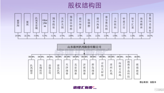 根据招股书,崔贵海与崔宸系父子关系,崔贵海与陈晓静为夫妻关系,崔宸与陈晓静为母子关系,三人合计控制公司60.06%的表决权股份,为公司共同实际控制人。此外,持有公司5%以上股份的股东为崔贵海、崔宸、扒鸡美食城、Gloryfarm和国寿投资,另外天津天图和深圳天图合计持有公司5.41%股份。