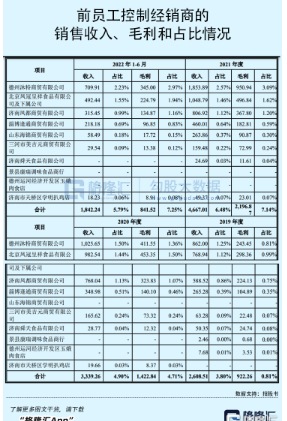 报告期内,和公司产生交易的由前员工或前员工亲属控制的经销商和加盟商主要有德州沐特商贸有限公司、北京凤冠呈祥食品有限公司、济南凤都商贸有限公司、淄博逢通商贸有限公司、山东海锦商贸有限公司、三河市美吉元商贸有限公司、济南舜天食品有限公司、景县康瑞调味食品商行、德州运河经济开发区玉娥肉食店和济南市天桥区学明扒鸡店。