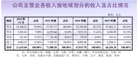 德州扒鸡的销售地域性明显,目前它的主要生产加工配送中心位于山东,为保证产品品质,线下销售区域主要覆盖山东与京津冀地区,国内其他地区可销售的产品种类与数量相对较少,在一定程度上不利于品牌的拓展,会使得其在全国范围内市场占有率受限。