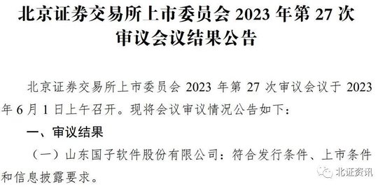 根据审议会议结果,本周继鸿智科技之后,国子软件于6月1日同样成功闯关,至此北交所总过会企业合计221家。