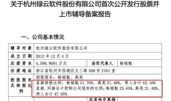 据上市辅导备案报告显示,杨铭魁与高亮为控股股东,两人直接、间接持股分别为25.65%、21.40%,合计 47.05%。