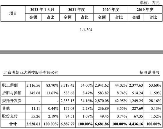除了综合毛利率明显低于所有可比同行上市公司,明朝万达在产品研发上也存在疑点。