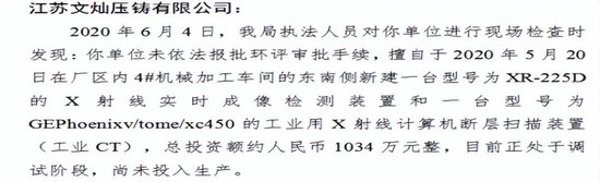 公司前五大客户之一“文灿股份”包括:雄邦压铸(南通)有限公司、天津雄邦压铸有限公司、广 东文灿压铸科技有限公司,据通环罚字〔2018〕18号显示,南通市环境保护局因天津雄邦压铸有限公司超标排污,责令立即改正违法行为,处以罚款人民币贰万零玖佰元整。2020年8月31日宜兴市因,而江苏文灿压铸有限公司之前2019年曾两次排放起标受罚,分别为锡环罚决〔2019〕52号和锡环罚决〔2019〕51号,被处罚13万元和40万元。2020年还未批先投被处罚二十万万六千八百元。