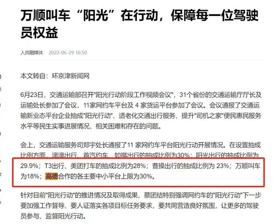 据“人民数据研究院”2024年1月26日发布的《网约车数据实测分析报告》显示,高德地图平台上的神州专车、哈啰出行平台上的阳光出行、曹操出行的抽成比例,分别为28%、27%和26%。