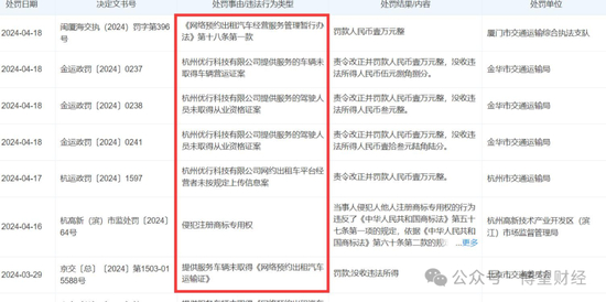 此外,作为曹操出行主体公司,杭州优行科技共计遭遇行政处罚共计175笔,今年为47笔。