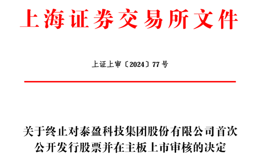 5月13日晚,上交所网站更新,因泰盈科技集团股份有限公司(下文简称:泰盈科技)和保荐人中国国际金融股份有限公司申请撤回申请文件,根据有关规定,上交所决定终止对其首次公开发行股票并在主板上市的审核。