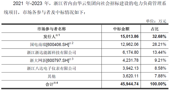 发行人称,相较于上述对手,自身业务优势集中于“负荷管理”相关应用领域。从区域市场来看,2021年至2023年发行人在浙江省省级集中建设的电力负荷管理系统类项目市场中,市场占有率超过30%,处于市场领先地位(详见下图)。