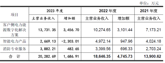 发行人客户侧电力能源数字化解决方案业务收入占比由2020年的23.98%提升至2023年的67.7%,毛利额占比亦提高43个百分点至66.44%。