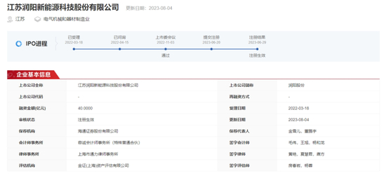 2022年3月18日,润阳股份申请创业板IPO获受理,海通证券为其保荐机构,拟募资40亿元。2022年11月,润阳股份IPO获深交所上市委审核通过。2023年6月29日,润阳股份取得证监会IPO批文。然而,此后润阳股份的IPO之路便进入了静止状态,不仅没有完成发行,也未再披露更新的财务信息及招股书。