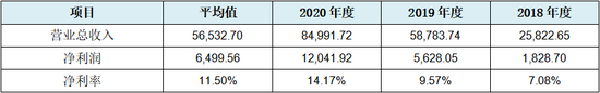 从上表可见,发行人的总体毛利率在50%左右,并且最高最低值以50%为基准,较为严格呈±4%的幅度变化,如上表所示最高值为2019年度为54.03%,最低值为2020年度46.56%,均为50%±4%变化。发行人三年平均毛利率值为50.74%,也即发行人产品售价中一半以上为毛利润。