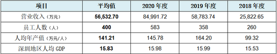 发行人经计算的人均年产值与所在地深圳市的人均GDP比较情况,如下表所示:
