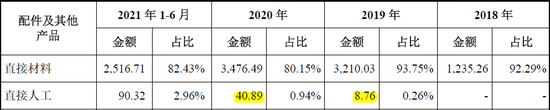 发行人披露的配件及其他产品部分成本,如下表所示: