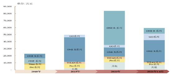 从上图可见,支撑发行人本次上市业绩的是ONEX系列和ONER系列,ONEX系列首款产品于2018年10月推出,2019年度销售额即达34,635.66万元,占2019年度收入比也高达59.22%,可见2019年度的爆款产品名副其实为ONEX。ONER系列产品于2020年1月推出,2020年度当年即实现销售收入48,486.00万元,占2020年度收入比也是57.91%。