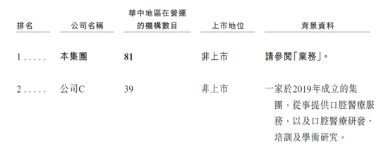 值得注意的是,截至2023年12月31日华中地区在营运的口腔医疗机构数目计的华中地区前五大民营口腔医疗服务提供商中,大众口腔以81家位列第一,但是第二名公司C的机构数目仅为39家。也就是说,公司C以更少的机构数目但是却获得与大众口腔极为相近的市占率。