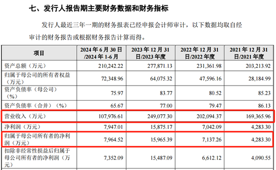 2021年至2024年,汇通控股的营业收入分别为4.17亿元、6.28亿元、7.65亿元、10.75亿元,归母净利润分别为5690.96万元、1.62亿元、1.52亿元、1.68亿元。