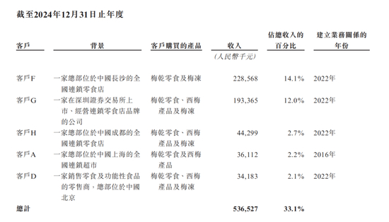 2022年,公司相继与鸣鸣很忙、好想来等量贩零食品牌建立业务关系,到2024年,前五大客户中,量贩零食占据前三,其中,对鸣鸣很忙和好想来的收入分别为2.29亿元和1.93亿元,这两个量贩零食品牌合计贡献了公司26.1%的营收。