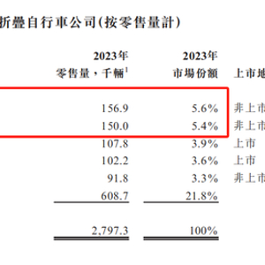 公司在中国内地市场的领先优势也较为明显。灼识咨询数据显示,大行科工为中国内地最大的折叠自行车公司,于2023年实现149200辆的零售量,占据21.1%的市场份额。排名第二的公司市场份额为13.7%。