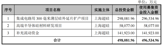 本次募集资金49.65亿元,将投资于“集成电路用300毫米薄层硅外延片扩产项目”“高端半导体硅材料研发项目”和“补充流动资金”。其中29.65亿元将投入集成电路用300毫米薄层硅外延片扩产项目中。