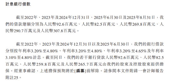 业绩数据光鲜,但坦博尔正面临着不小的资金压力。今年上半年,公司现金及现金等价物仅为2600.9万元,相较2024年末的1.54亿元大幅收窄,而截至今年8月31日,公司的借款总额高达3.08亿元,现金的快速消耗与债务的高企,使其此番赴港IPO寻求“补血”显得尤为迫切。
