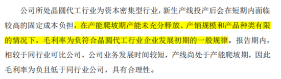 对此公司在招股书中辩解道,其业务发展时间较短,产能尚未充分释放,毛利率被高额折旧压缩,这是晶圆厂发展初期的正常现象。
