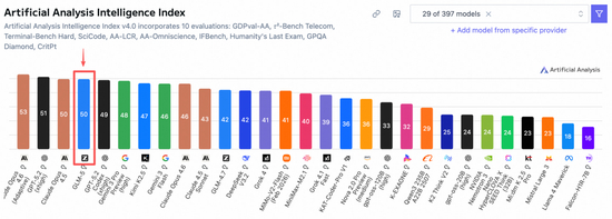 而在全球权威的 Artificial Analysis 榜单中,GLM-5 位居全球第四、开源第一。
